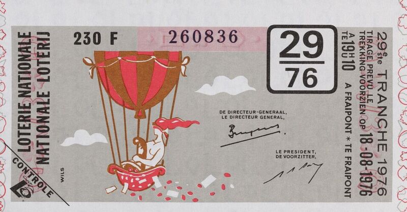 hoog lot : 12.000.000 fr. Trekking : 18_25 augustus en 1 september
