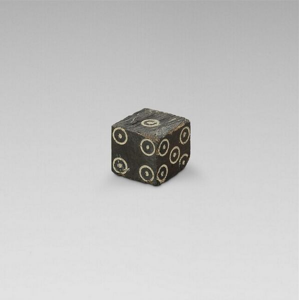 Ce dé romain cubique possède le système de répartition des points 1 opposé à 6, 2 opposé à 5 et 3 opposé à 4. La somme des points opposés donne toujours le chiffre 7. Une telle répartition des points était la norme à l'époque romaine, peut-être sous l'influence du système grec de répartition des points sur l'osselet.